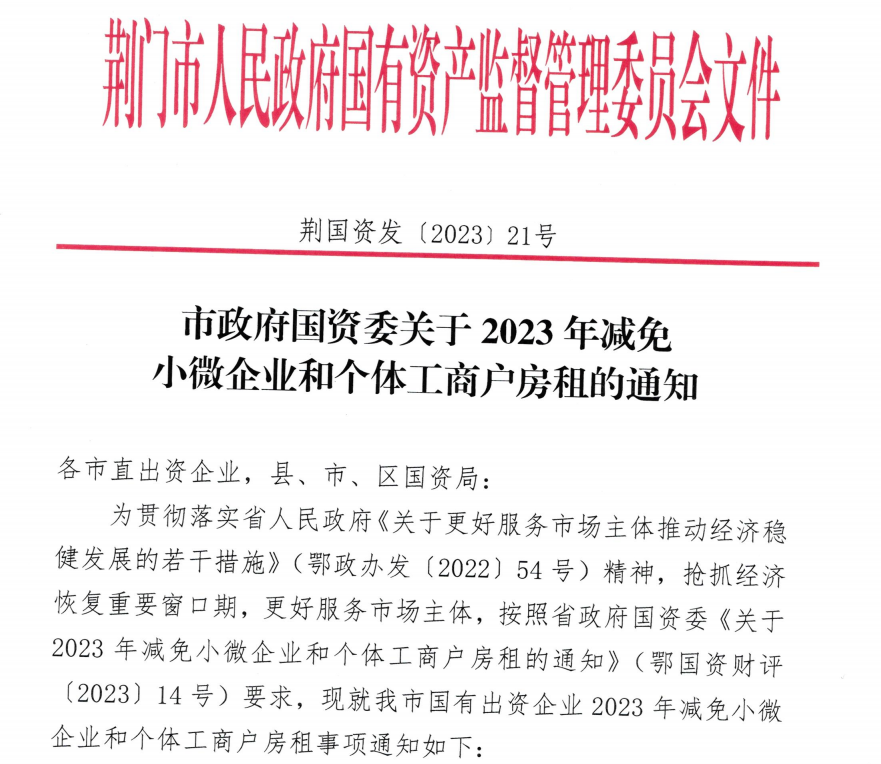 市政府國資委關(guān)于2023年減免小微企業(yè)和個體工商戶房租的通知