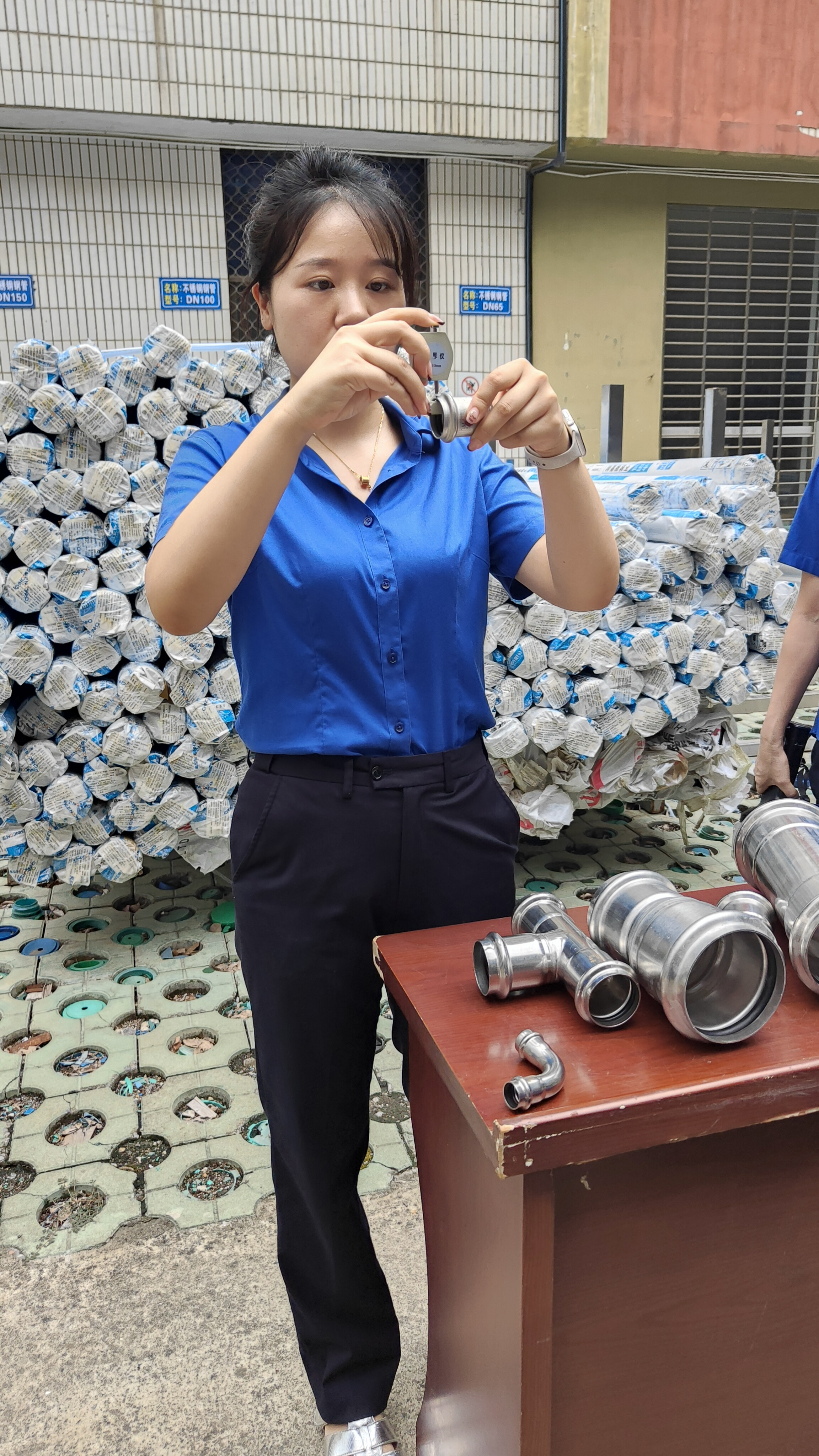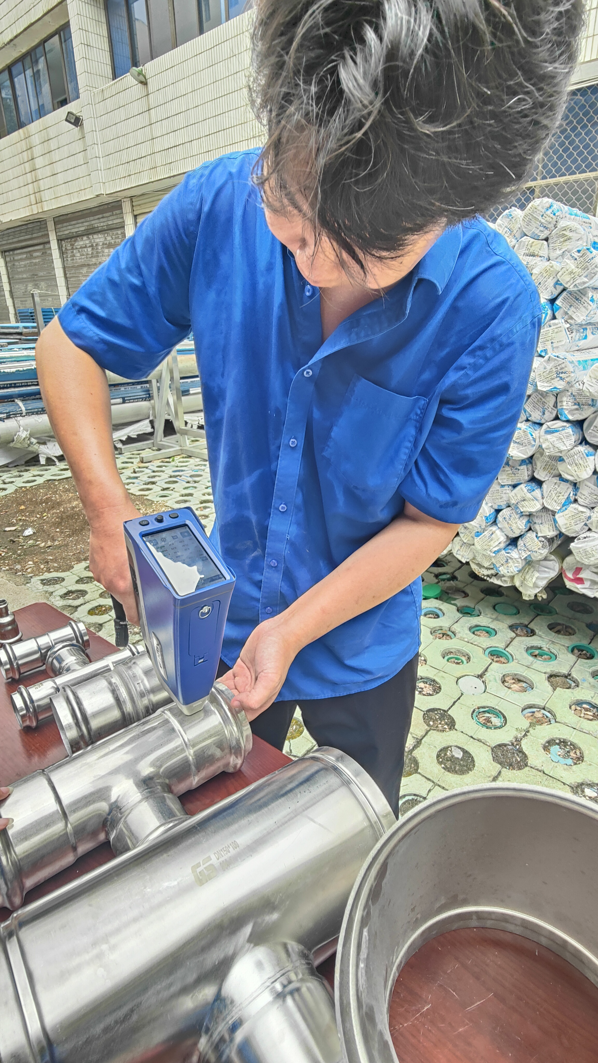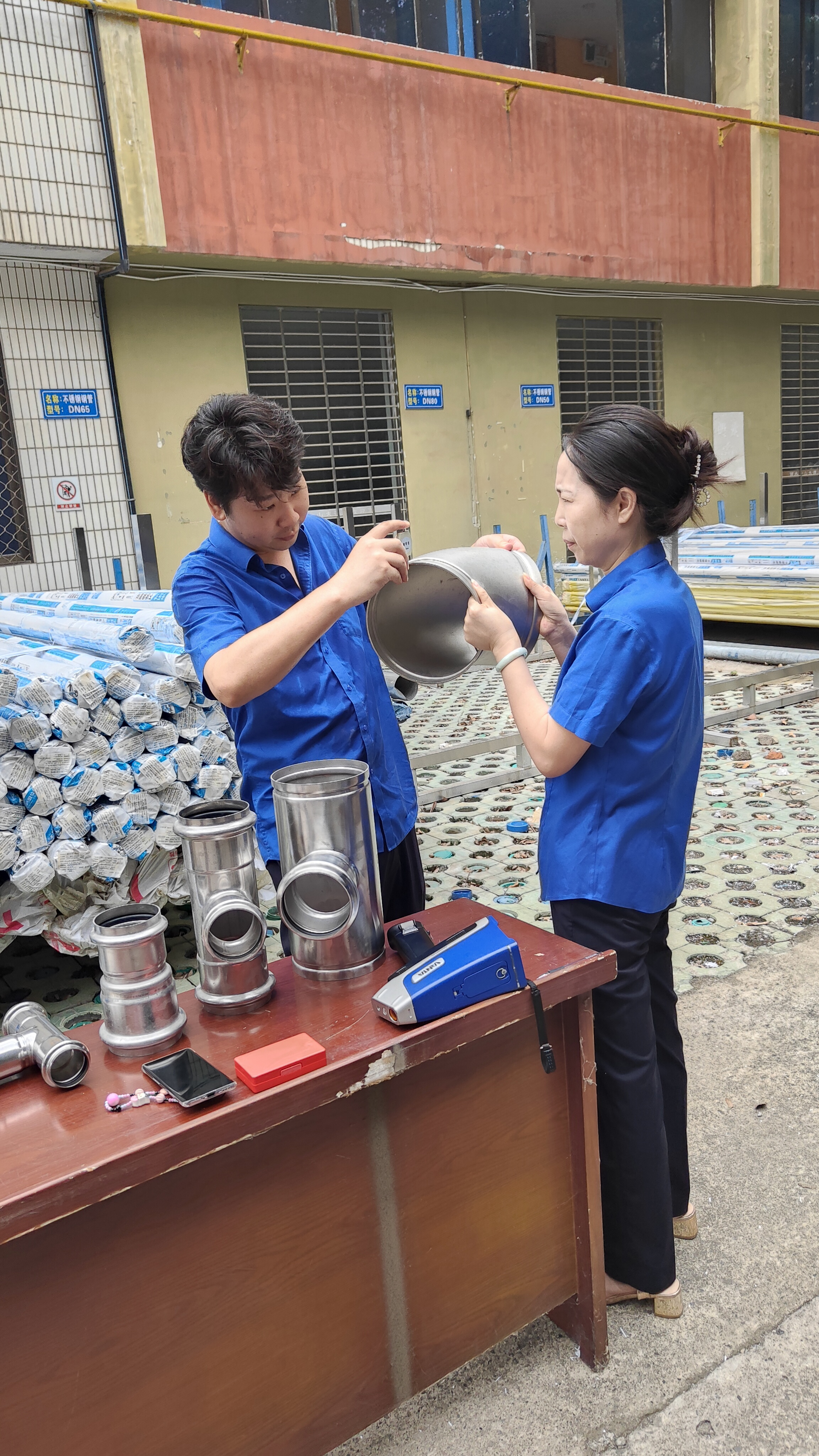在實(shí)操比武環(huán)節(jié),參賽人員按流程對(duì)各類型號(hào)管件進(jìn)行鑒別與檢驗(yàn):運(yùn)用手持光譜儀檢測不銹鋼材質(zhì)成分,確認(rèn)是否符合不銹鋼304標(biāo)準(zhǔn);使用測厚儀測量管件壁厚,嚴(yán)格把控尺寸偏差;用卷尺測量長度,核對(duì)與標(biāo)準(zhǔn)值的誤差。整個(gè)比武過程規(guī)范有序,參賽人員嚴(yán)謹(jǐn)操作,展現(xiàn)了扎實(shí)的驗(yàn)質(zhì)功底。